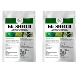 Gli SHIELD is a powerful bio-organic formulation containing root extracts of curcuma longa and other medical plants. It offers a natural eco friendly solution for preventimg fungal and bacrial infetions across a variety of crops. Designed to safeguard yield, GLI SHIELD is ideal for use on grapes banana, papaayas, guavas, cotton, onions, gingr, turmeric, chillies, bringal, tomatos, potatos, cucumbers, pomoranates (white blight) mangoes and paddy