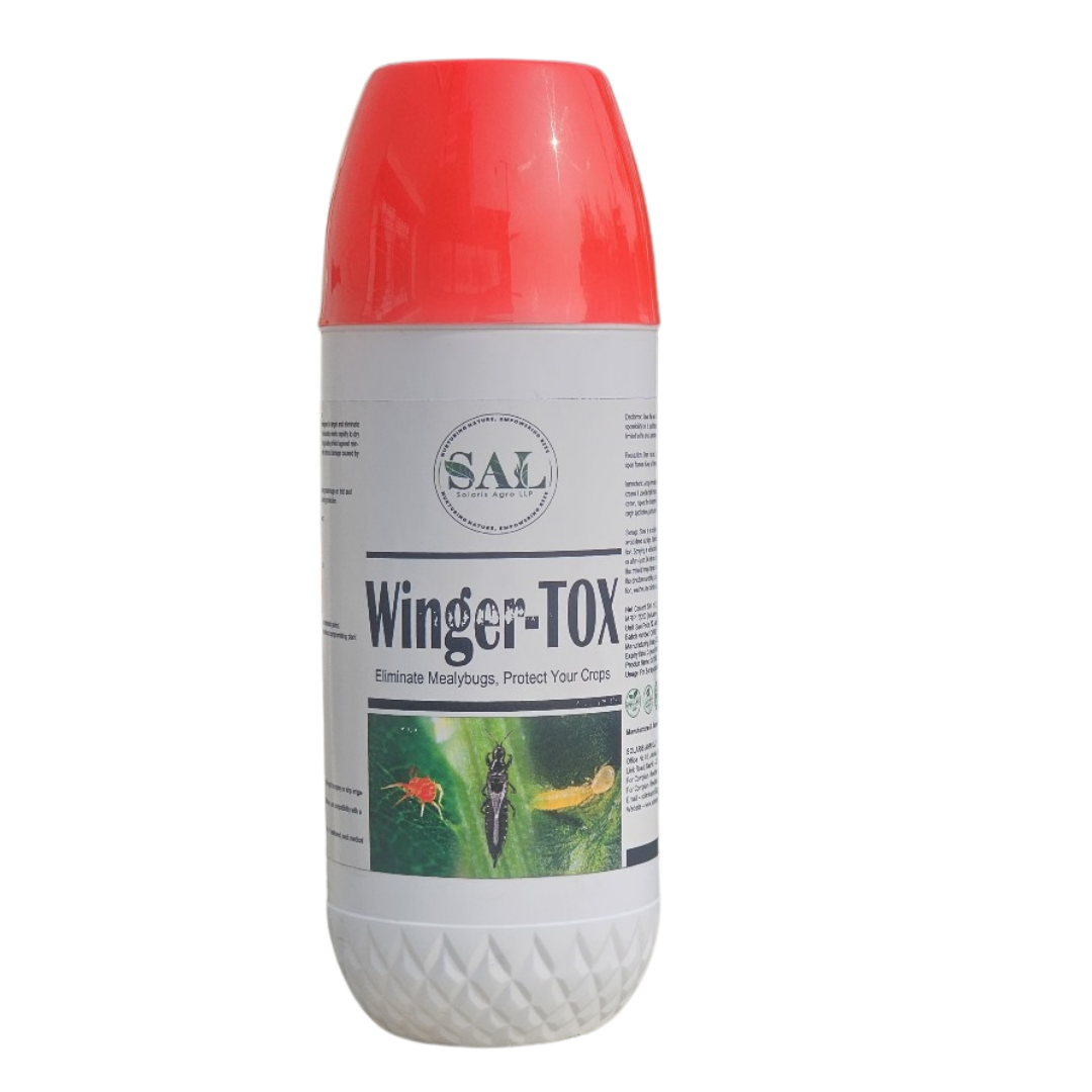 Winger Tox is a highly effective solution for controlling a wide range of sucking pests, including thrips, black thrips, red mites, and other related pests that can harm crop health and reduce yields. This advanced formulation ensures rapid action against pests, providing both curative and preventive benefits. Designed to deliver long-lasting results, Winger Tox safeguards crops by eliminating pests at all life stages, minimizing crop damage, and enhancing overall plant vitality. It also helps prevent the transmission of plant viruses caused by these pests, protecting crops from further issues like leaf deformation and reduced growth.